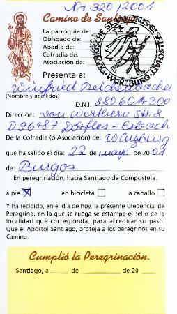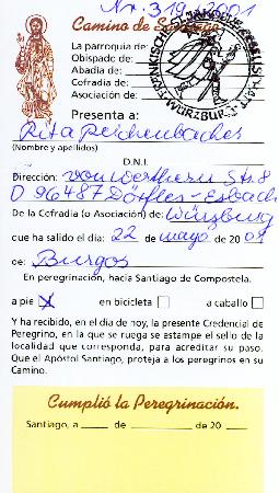 Dann wurde der Termin endgültig festgelegt und Hin- und Rückflüge gebucht und der Pilgerausweis "la credencial" angefordert. Am 21. Mai 2001 von München nach Madrid und am 21. Juni 2001 von Santiago de Compostela über Barcelona nach München. Liebe Freunde haben uns gute Wünsche und den Pilgersegen geschickt. Üben, die Rucksäcke praktisch zu packen - was muss zuhause noch geregelt werden. Die Nervosität erreicht ihren Höhepunkt. |