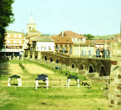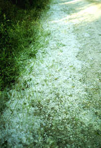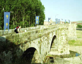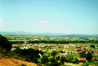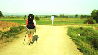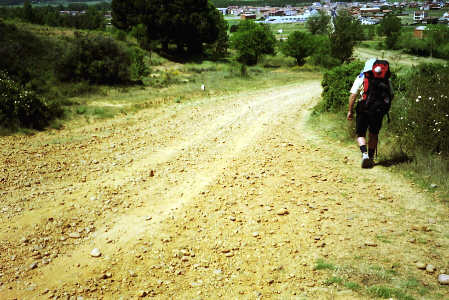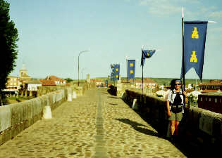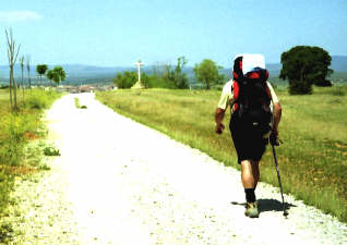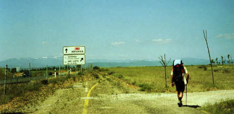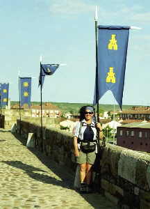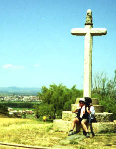 Heute ist es wieder sehr heiß und nach 12 km ist unser Wasservorrat aufgebraucht. Aber eine hilfsbereite Einwohnerin von Hospital de Orbigo versorgt uns mit frischem Wasser. Lästig sind die Pappelblüten, die in riesigen Wolken umher fliegen und eingeatmet werden. Beim Crucero de S. Toribio sieht man schön hinab auf Astorga - Rita ruft zuhause an und meint, dass wir gleich in Astorga sind. Aber die 5 km bedeuten halt immerhin noch über eine Stunde laufen. |