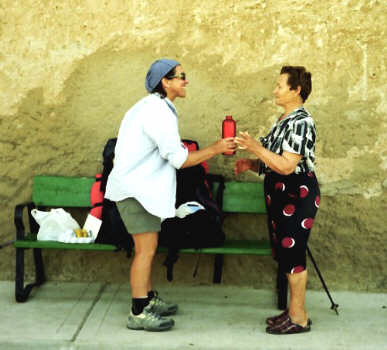 In Hospital de Orbigo waren unsere 2 l Wasser aufgebraucht - eine nette Frau gibt uns frisches Wasser. |