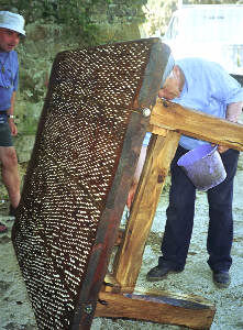 Mit diesen "umgedrehten Tischen" wurde früher gedroschen! |