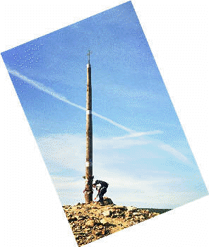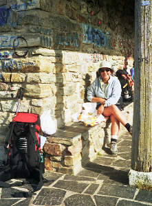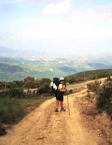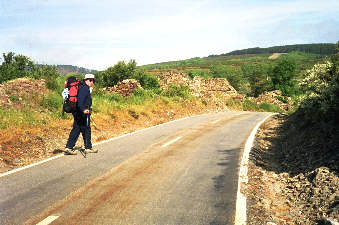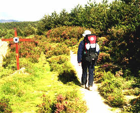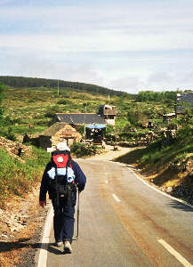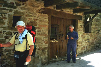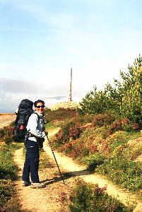 Heute passieren wir einen besonderen und markanten Punkt auf unserem Weg nach Santiago: das Cruz de ferro - das eiserne Kreuz. Hier wollen wir die Steine von Oma Dolores, unseren Kindern und natürlich auch unsere eigenen Steine ablegen - Jakobus wird uns bei der Erfüllung all unserer Wünsche helfen. Ich hatte nur meinen eigenen Stein bis hier hin getragen - Rita hatte alle übrigen und war sicherlich erleichtert, sie hier lassen zu können. Natürlich melden wir gleich stolz nachhause, dass die "Wunschsteine" am Ziel angekommen sind. |
