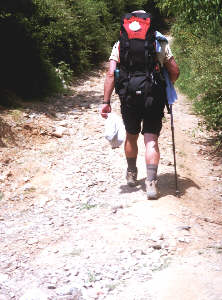 Heute wird es wieder "ernst" - der Hochzeitstag ist vorbei. Aber es erwartet uns eine nicht zu lange und nicht zu schwierige Etappe. Den Weg aus Ponferrada zu finden ist nicht einfach - wir dachten mehrfach, dass wir uns verlaufen haben, bis wir dann doch wieder einen gelben Pfeil fanden. Gestern haben wir alle Filme der vergangenen Tage entwickeln lassen - Neugier wie die Bilder geworden sind und Sicherheit, dass die Filme in der Hitze im Rucksack keinen Schaden erleiden. Aber jetzt müssten wir halt den ganzen Berg Papierbilder bis Santiago schleppen. Deshalb wird in Camponaraya Dank der Hilfe eines netten Herren im Eisenwarengeschäft ein Paket geschnürt und nachhause geschickt. So können Yaya, Michael und Katrin auch sehen, was wir in den vergangenen Tagen auf dem camino erlebt und gesehen haben. |