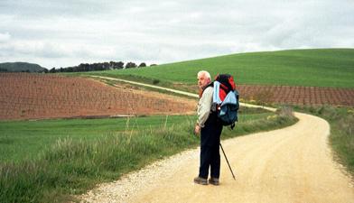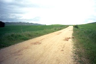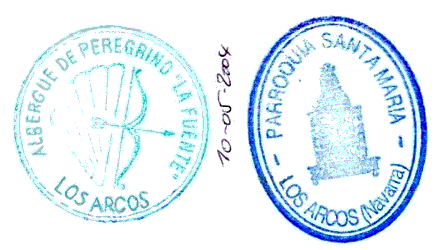 Kurz hinter Estella liegt das Weingut Irache, welches für die Pilger kostenlos Wasser und Rotwein ausschenkt. Hätten wir den Reiseführer genauer gelesen, wären nun die Trinkflaschen nicht voll mit Mineralwasser, versetzt mit Magnesium, oder wir hätten wenigstens ein Trinkgefäß dabei. Aber so - Fotos - und weiter. Weiter nach Azqueta (hier waren wir doch schon einmal bei der Parador- Rundreise!), vorbei an der Fuente de los Moros und Villamayor de Monjardin (guter Wein am Vulkankegel) nach Los Arcos. |