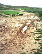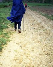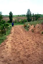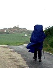 Vom Start weg wieder Regen. Die aufgeweichten Wege bekamen "Nachschub". Die Schuhe wurden schwer und schwerer, man wuchs sogar!. Wann kommt endlich ein Ort mit einer Bar, wo man einem café con leche bekommt? Große Enttäuschung in Sansol, Überraschung in Torres del Rio! Eine Bar und Katalanen als Wirtsleute - ein riesiges Weissbrot mit Tomate und Schinken - da kann man anschließend selbst dem größten Regen trotzen. |
