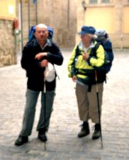 | Pilger Ursula und Franz Josef holen uns in Logroño ein. Pilger Rita und Winfried | |