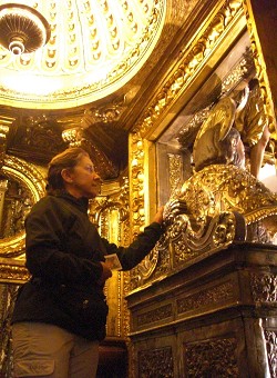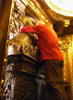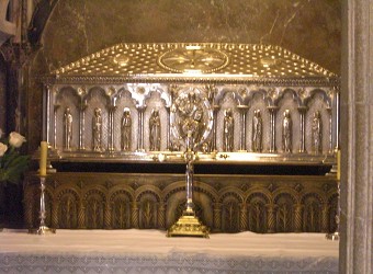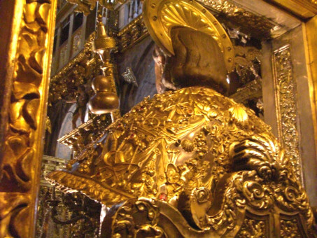 Die berühmte Jakobus-Büste in der Kathedrale von Santiago de Compostela aus nächster Nähe |
