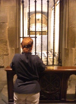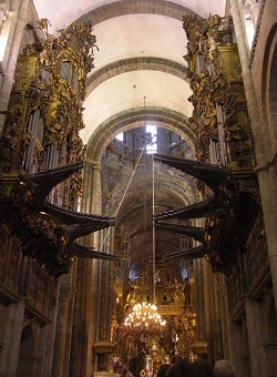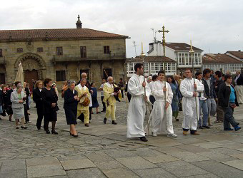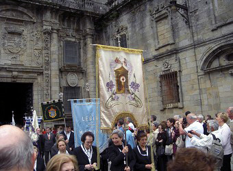| Heute an Fronleichnam steht die Kathedrale im Mittelpunkt des Tages. Messe natürlich mit Botafumeiro, Jakobus-Büste, Jakobus- Grab. Je nach Andrang wollen wir heute unsere dritte "Compostela" abholen. Das Pilgermuseum wollen wir auch besichtigen. Und vielleicht treffen wir ja Annemarie, Eckardt und Heinz. |