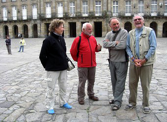 Gemeinsam mit unseren 3 Pilgerfreunden haben wir abends gegessen und Erfahrungen ausgetauscht. Morgen haben wir noch einen ganzen Tag in Santiago. Aber Annemarie fährt schon morgen zurück, Heinz und Eckardt ziehen weiter zum Cap Finsterre und nach Muxia. |