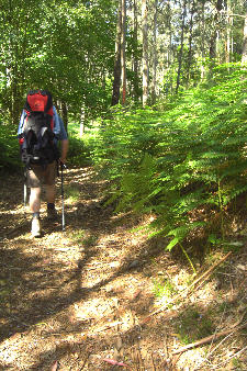 Wenn wir das vorher gewusst hätten - der Feve hätte 2 Fahrgäste mehr gehabt. Einen Tag überwiegend auf ehemaligen Landstraßen zu laufen war langweilig, eintönig und selbst die Füße und die Beine rebellierten! Dann gab es auch "Abkürzungen", die es in sich hatten. Auf diesen "Wegen" ging auf einmal nichts mehr vor Morast. Und auf den Pfaden, die wahrscheinlich Pilger vor uns daneben geschlagen hatten, war mit Farnen, Dornen und Brenn-Nesseln zu kämpfen. |