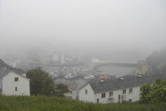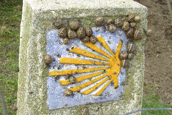 Heute früh war es wieder richtig neblig. Aber weil die Kennzeichnung des caminos so gut war, meinte Rita, ich könne wirklich aufhören im Führer zu lesen, dass wir in 46 m rechts abbiegen müssen, wenn man schon jetzt den Pfeil sieht. Gesagt - getan. Prompt haben wir nach einiger Zeit festgestellt, dass wir kurz vor Luarca schon lange kein "Zeichen" mehr gesehen haben. Sonntag früh, Pfingsten - da war weit und breit niemand, den man nach dem Weg fragen konnte. So haben wir ein letztendlich vorbeikommendes Auto angehalten und die nette Fahrerin hat uns den "richtigen Weg" gezeigt. |
