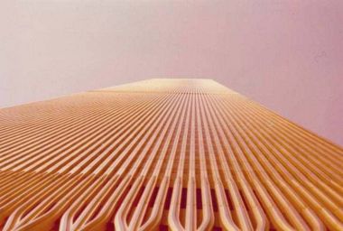 | Blick am World Trade Center hinauf | Aussicht vom WTC-Südturm zum Nordturm und Manhattan mit Empire State Building |
