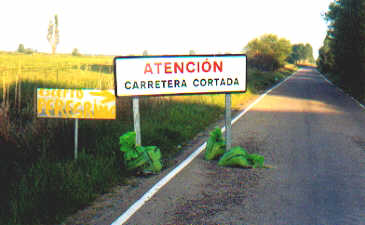 "Achtung, Straße gesperrt - außer für Pilger" |